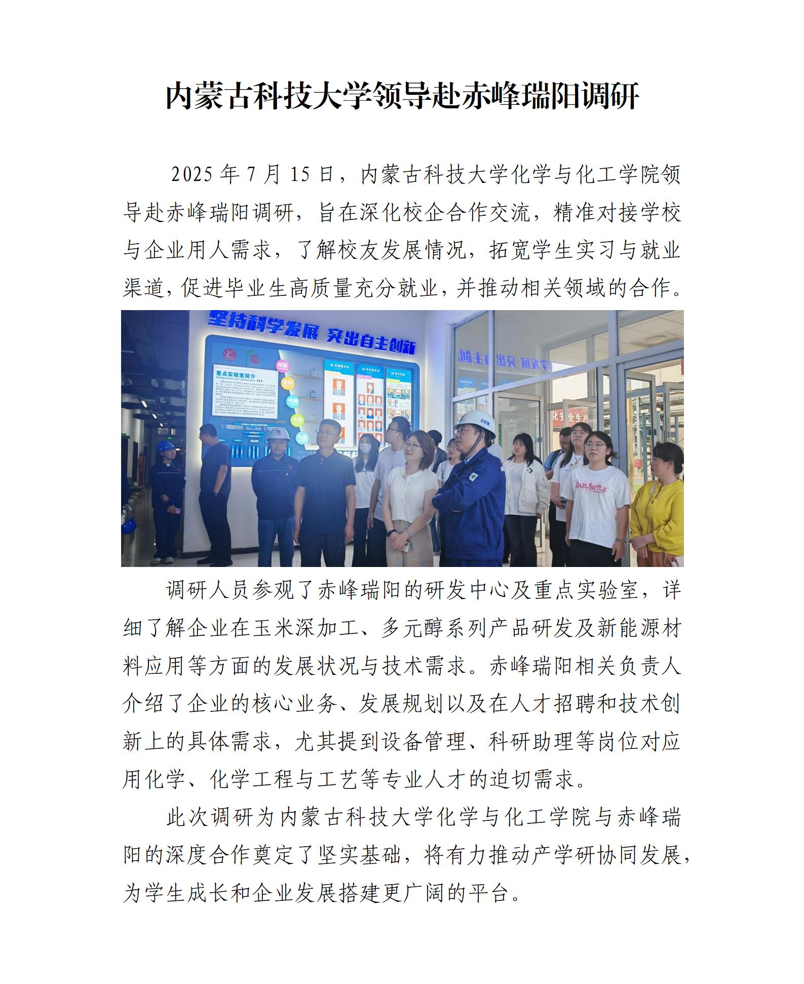 內蒙古科技大學領導赴赤峰瑞陽調研